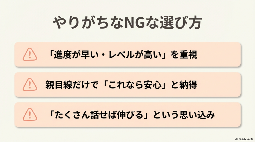 進みが早い、レベルが高い、評価が分かりやすい──一見すると安心材料に見えますが、注意が必要です。
