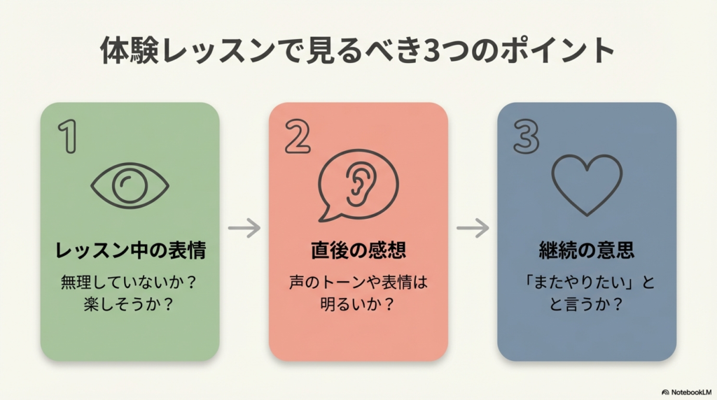 体験が終わったあと、「どうだった?」と聞いたときの反応も重要です。
