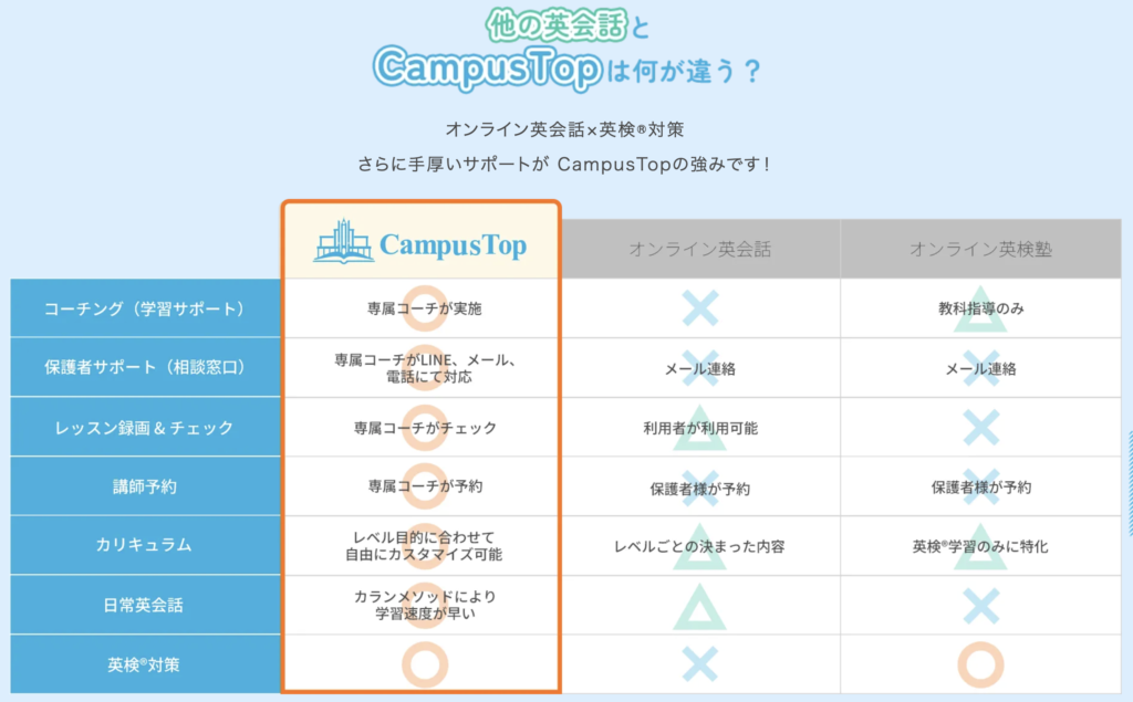 キャンパストップの特徴は、「レッスンの質」だけではありません。