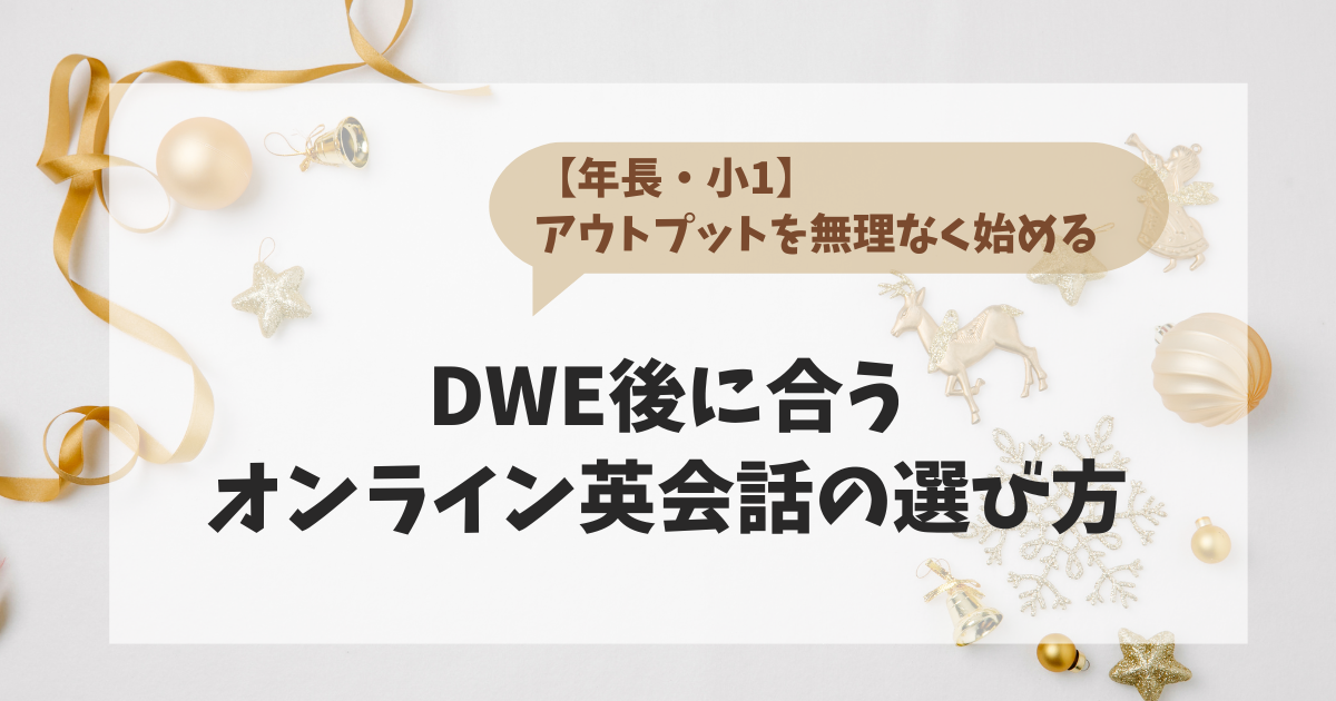 年長から小学校1年生ごろは、英語にたくさん触れてきた一方で、「話す」となると、まだ戸惑うことも多い時期です。DWEを続けてきたご家庭ほど、「そろそろアウトプットも始めたほうがいいのかな」と悩むことも少なくありません。実際、年長・小1の時期は、選び方を間違えると「まだ早かったかも」「続かなかった」と感じやすい時期でもあります。この記事では、年長・小1のDWE家庭だからこそ大切にしたい、オンライン英会話の選び方を、無理なくアウトプットを始める視点でまとめました。