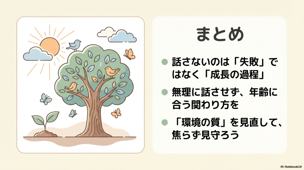 無理に話させる」のではなく、年齢に合う“環境選び”がポイントです。