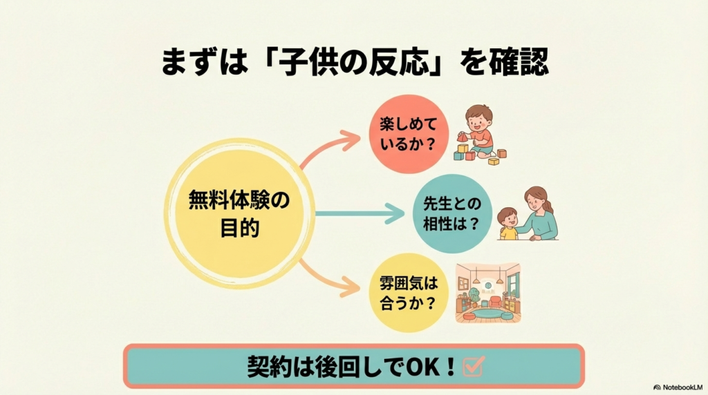 まずは無料体験で、お子さんに合うかどうかを確認してみるのがおすすめです。
