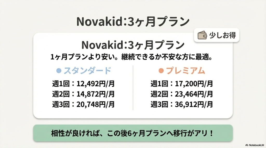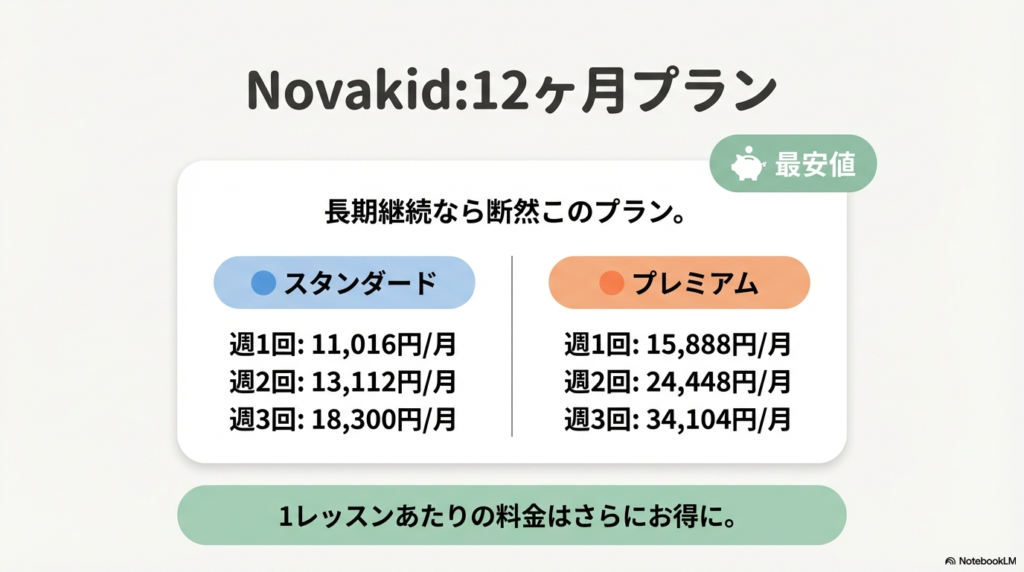 ノバキッドの料金は、契約期間とレッスン回数によって変わります。