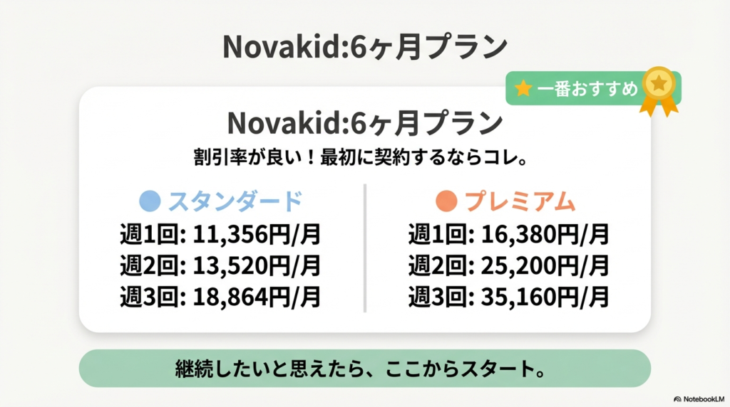 ある程度続ける前提なら、単価と期間のバランスが取れている6ヶ月プランが現実的です。