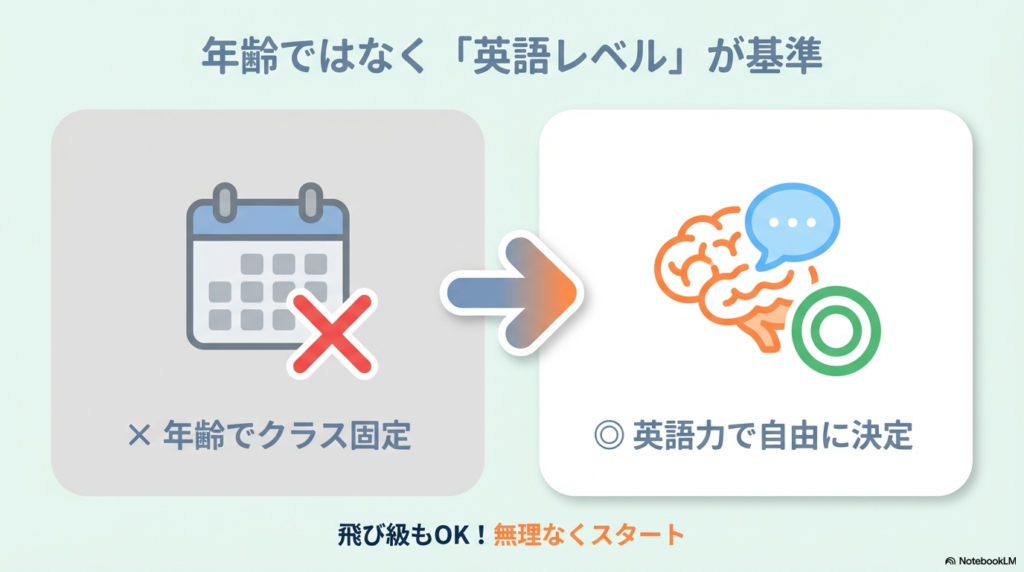Novakid(ノバキッド)では、年齢ではなく英語レベルを基準にレッスンが決まります。