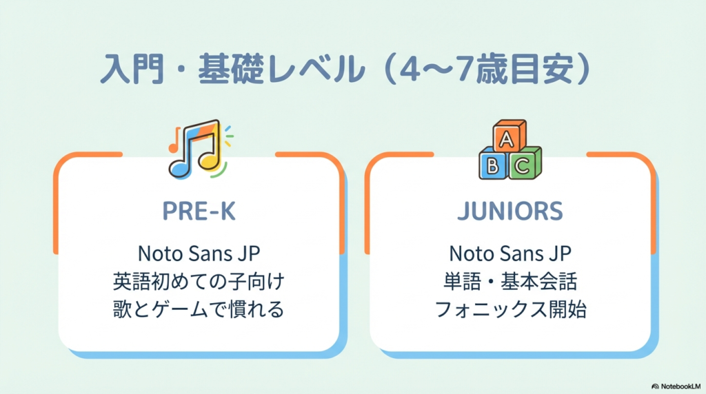 | ② JUNIORS | 5〜7歳 | 単語理解あり |