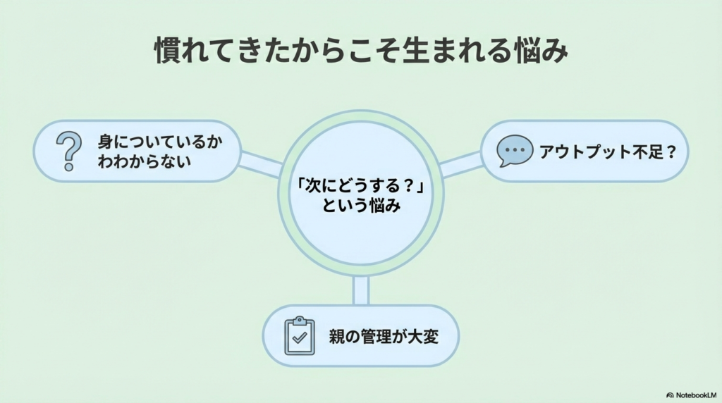 これは、英語学習が停滞しているサインではなく、次のフェーズを考えるタイミングに来ているというサインでもあります。