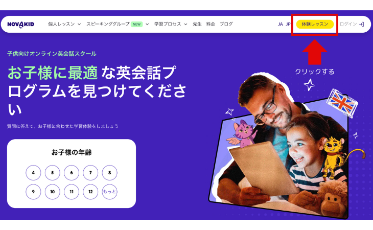 ノバキッドの始め方はとてもシンプルです。公式サイトから無料体験を予約し、レベルチェック後にプランを選ぶだけで始められます。すぐに申し込みたい方は、こちらから無料体験へ進めます。